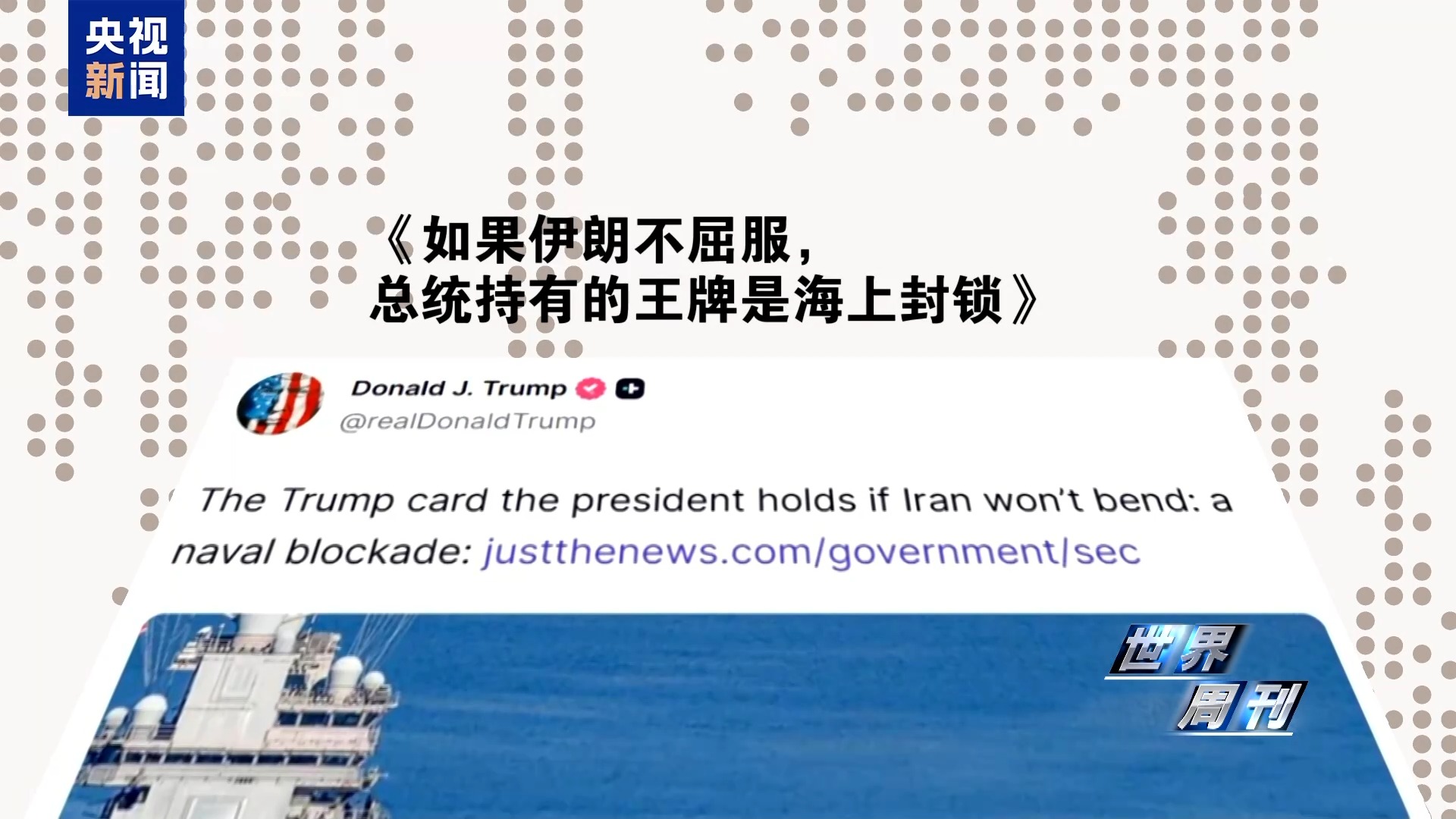4月12日,在宣布对霍尔木兹海峡实施“反向封锁”前,特朗普在社交媒体转发了一篇文章,标题是《如果伊朗不屈服,总统持有的王牌是海上封锁》,文中写道: