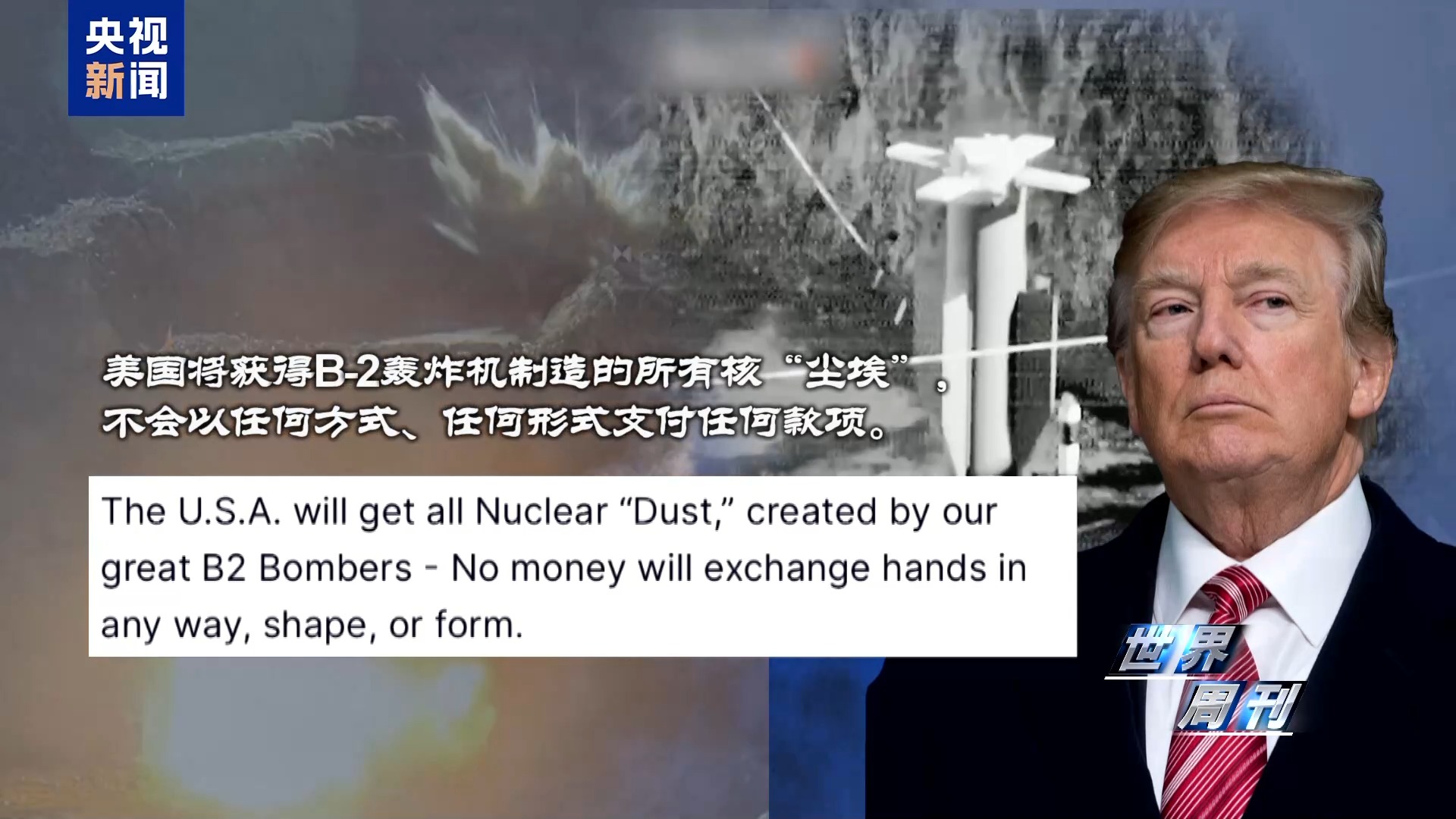特朗普发帖称,美国将获得B-2轰炸机制造的所有核“尘埃”,不会以任何方式、任何形式支付任何款项。
